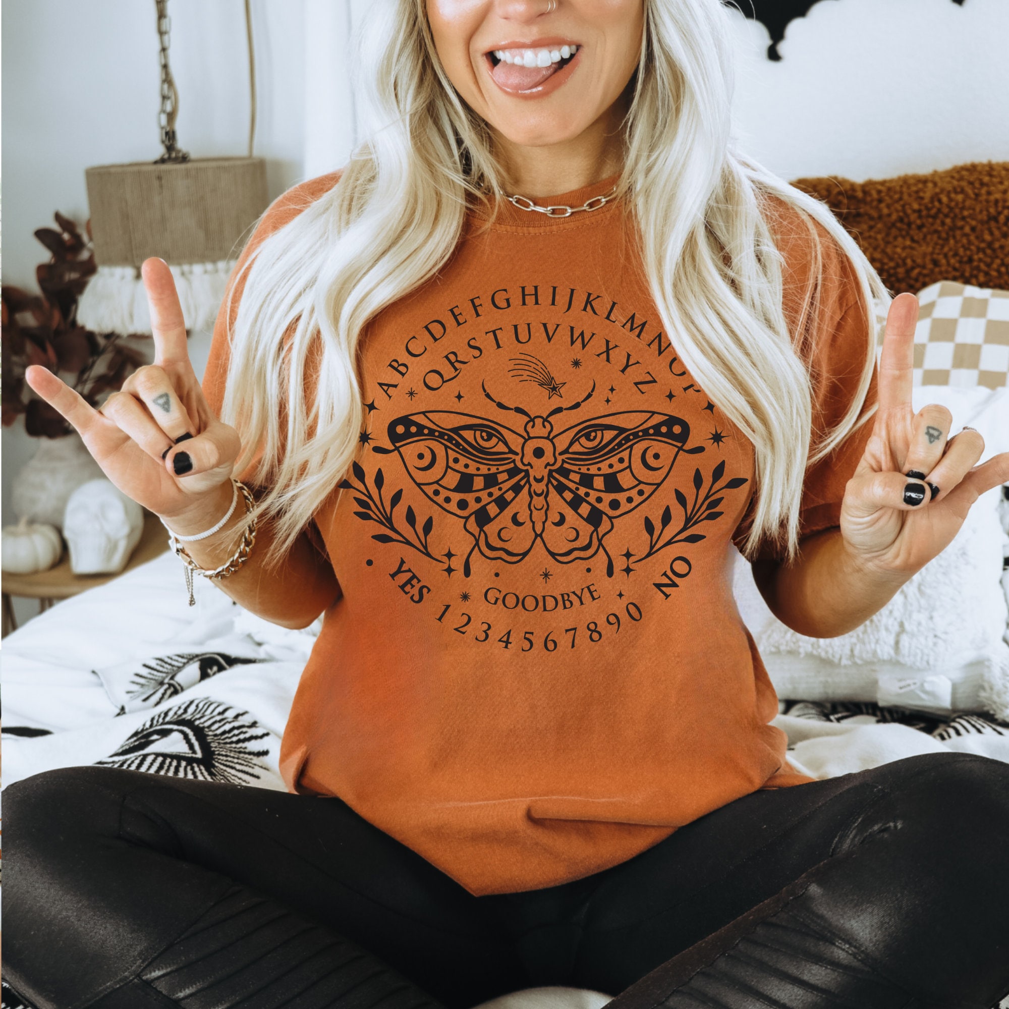 -- All orders submitted AFTER December 13th cannot be guaranteed to be delivered before Christmas. Talking Spirit Board Shirt, Witchy Ghost Spirit Board T-Shirt, Occult Halloween Tee