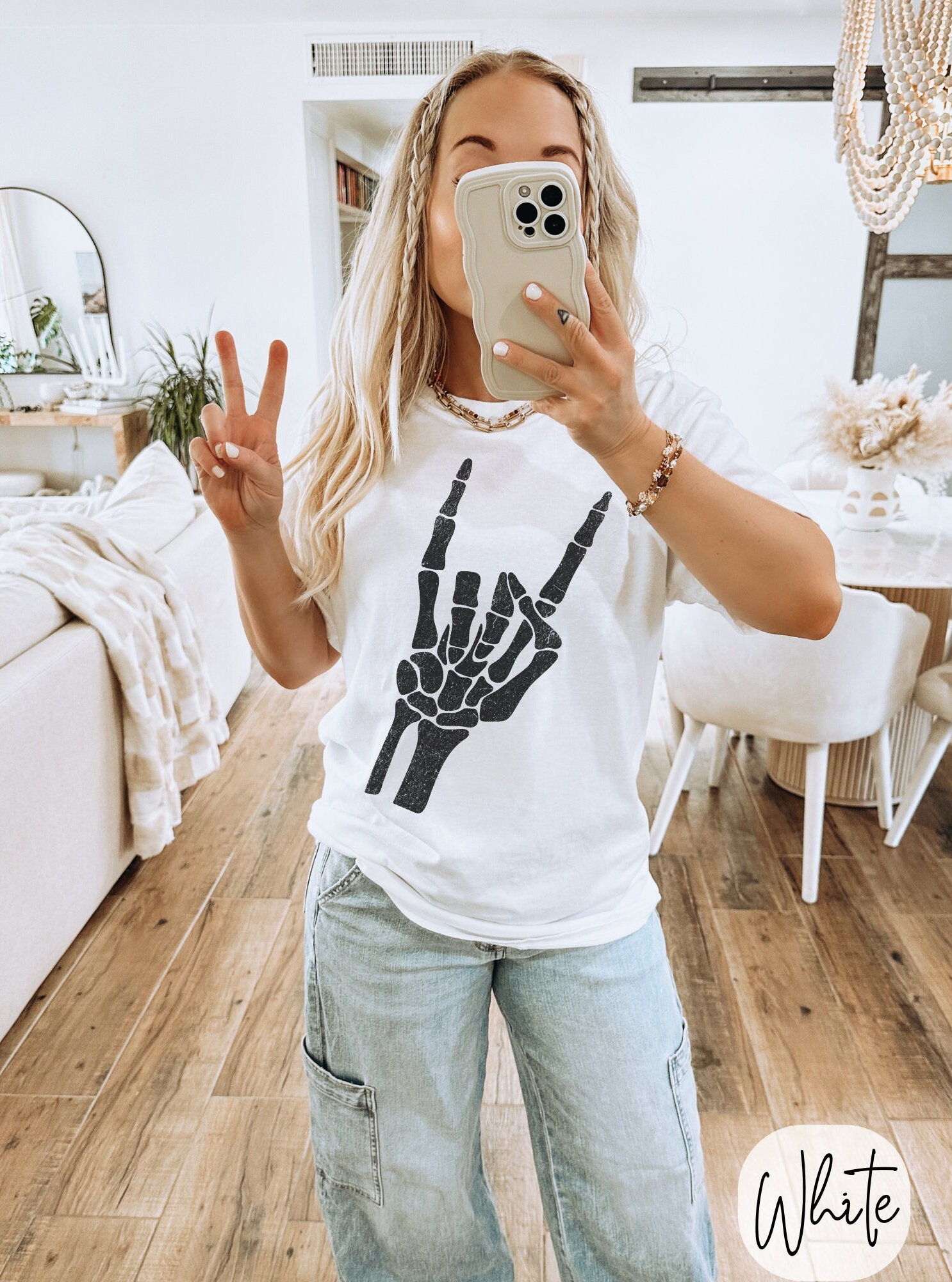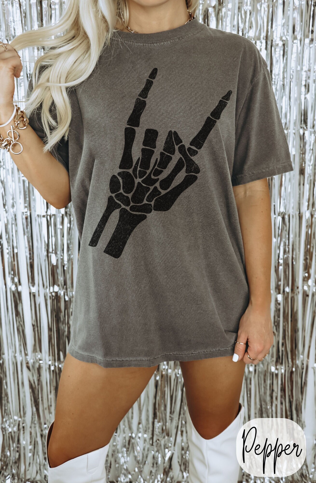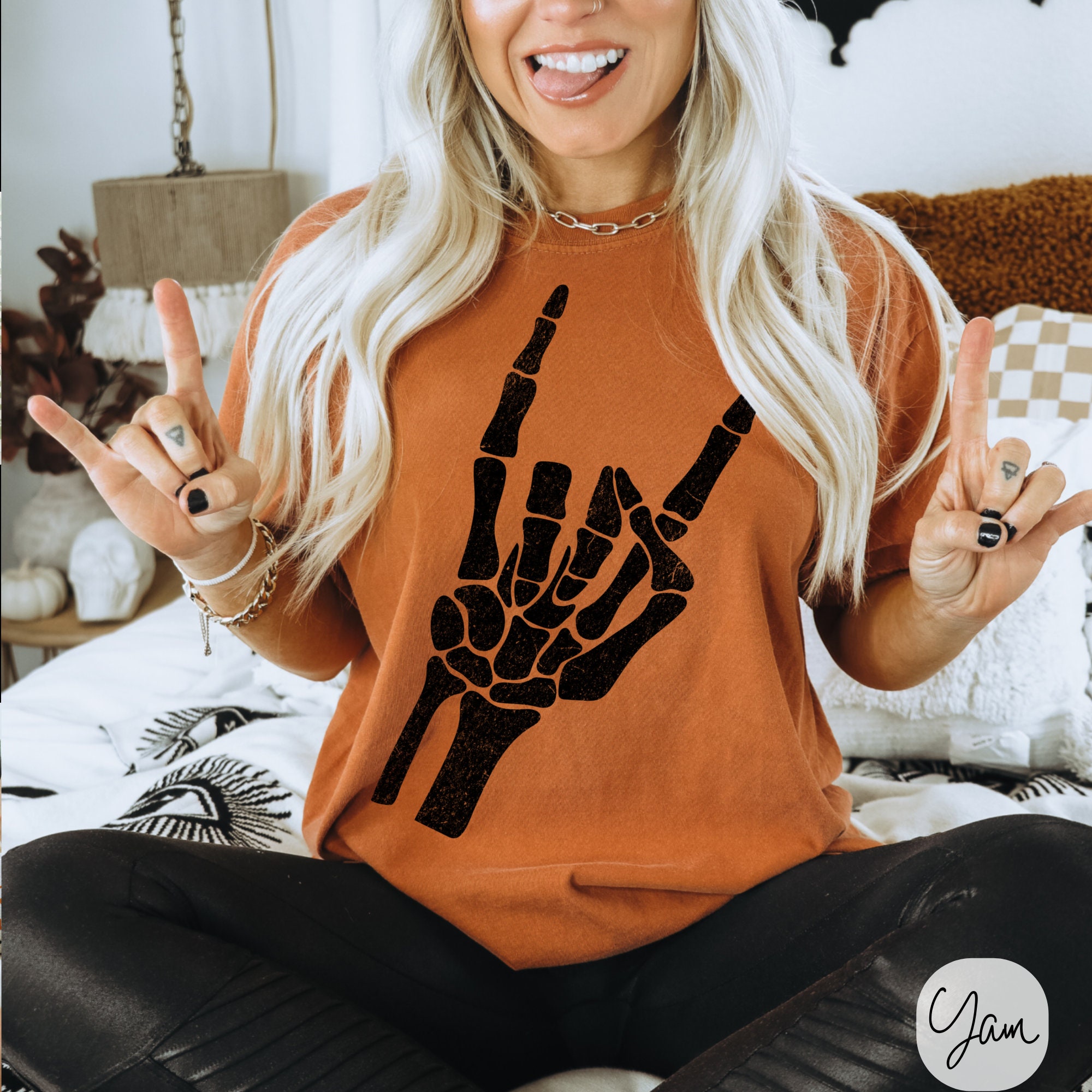 -- All orders submitted AFTER December 13th cannot be guaranteed to be delivered before Christmas. Skeleton Hand Rock On Graphic T-Shirt, Skeleton Shirt, Retro Skeleton Tee, 90s Skull Shirt, Spooky Shirt, Y2k Skull Tee, 2000s Oversized Tee
