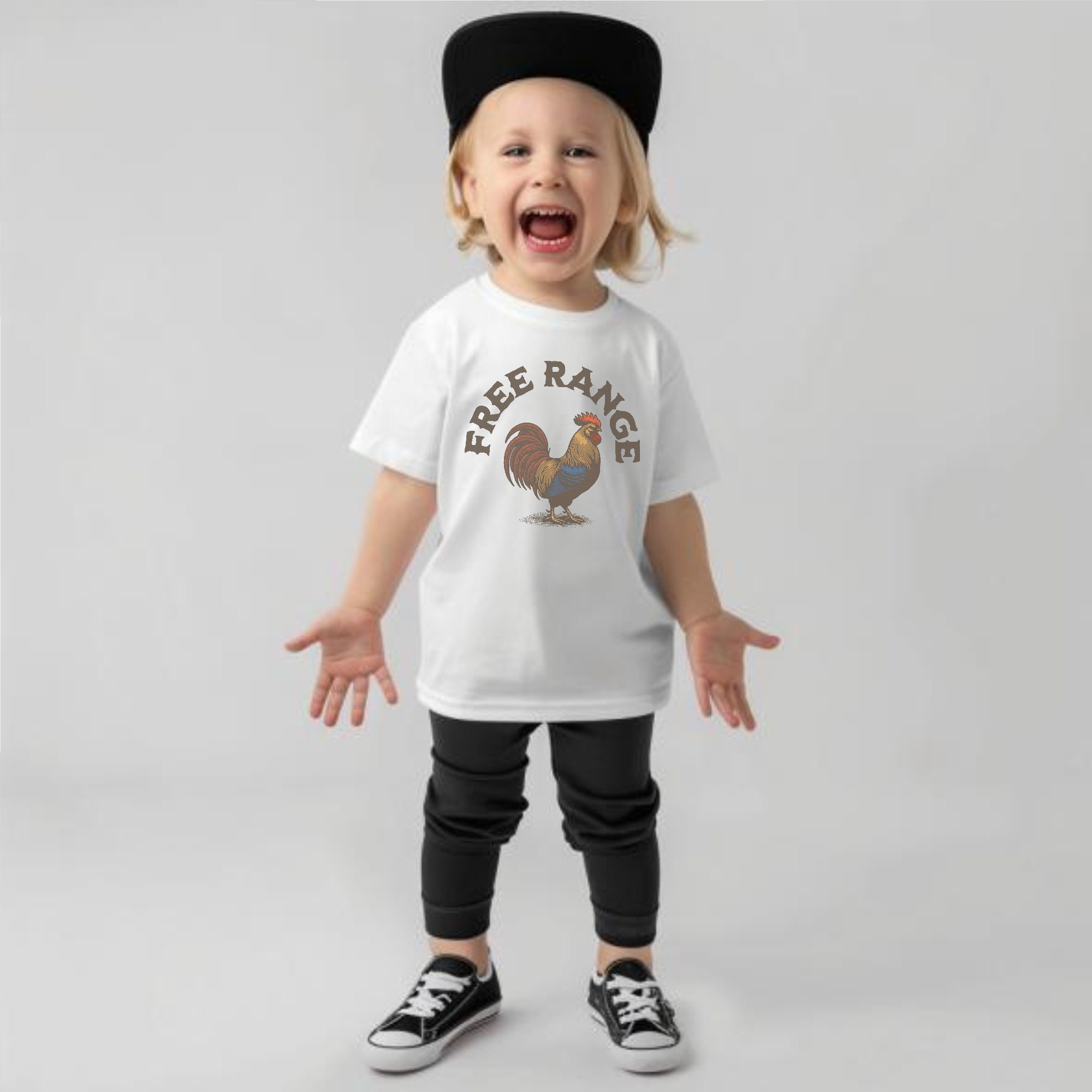 -- All orders submitted AFTER December 13th cannot be guaranteed to be delivered before Christmas. Toddler T-Shirt, Free Range, Chicken Rooster Natural Farm Tee for Toddlers, Infant Toddler Kids, Western Vintage