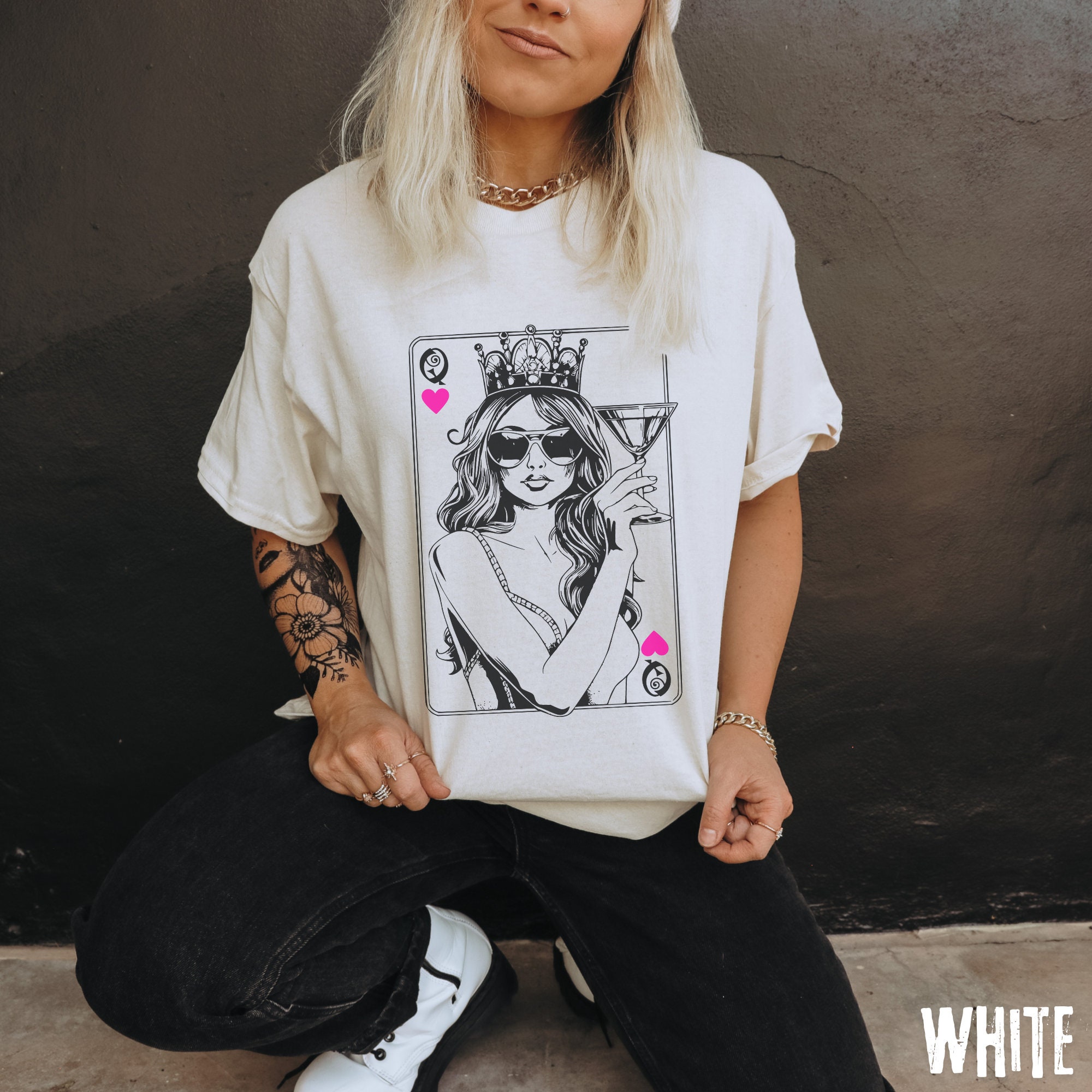 -- All orders submitted AFTER December 13th cannot be guaranteed to be delivered before Christmas. Vintage Queen of Hearts Graphic T- Shirt for Women, Oversized Style Women's Shirt, Feminist Tee, Playing Cards, Gift For Her, Pink Heart