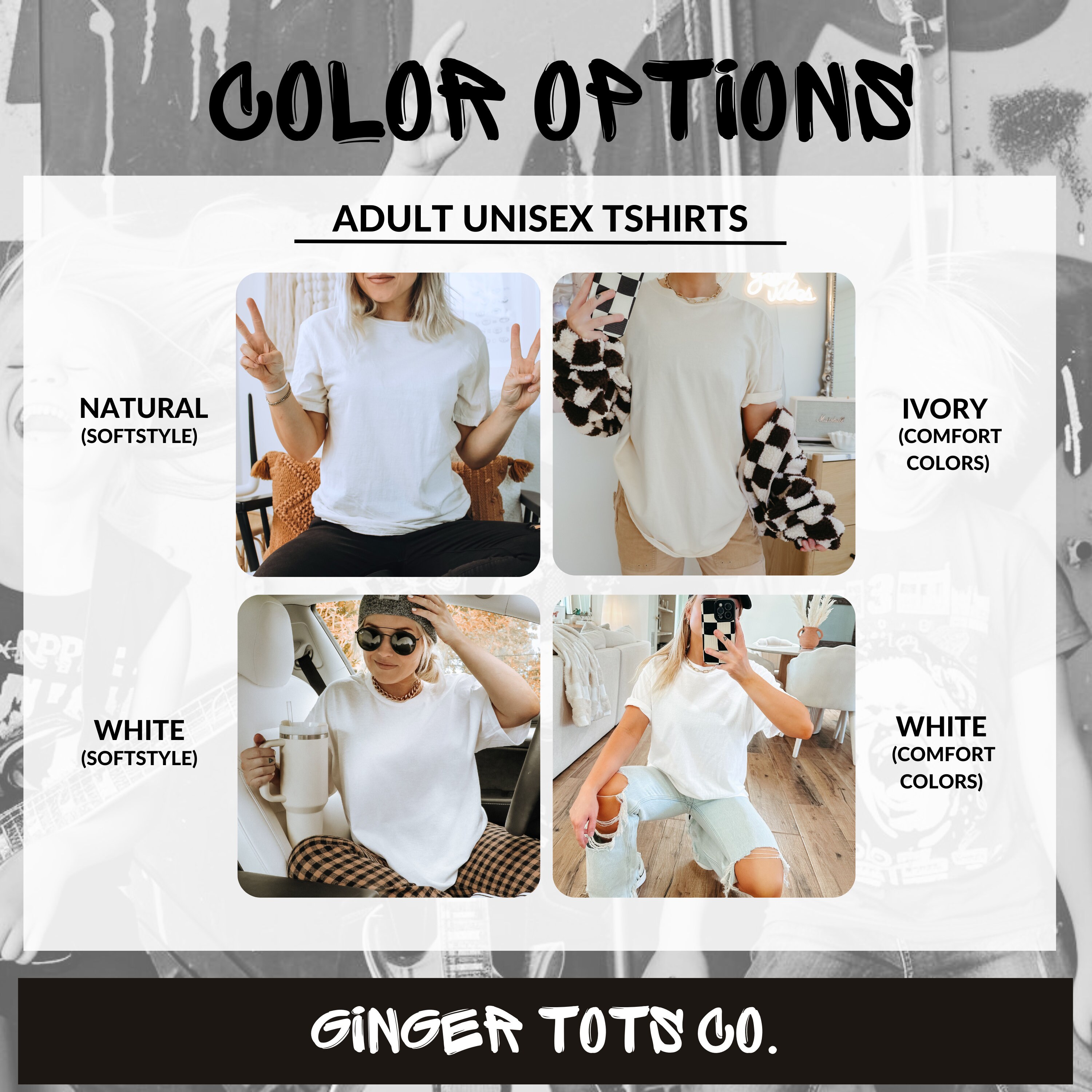 * Choose from a Comfort Colors (white/ivory) or Softstyle (white/natural) [Under "Colors" dropdown]
