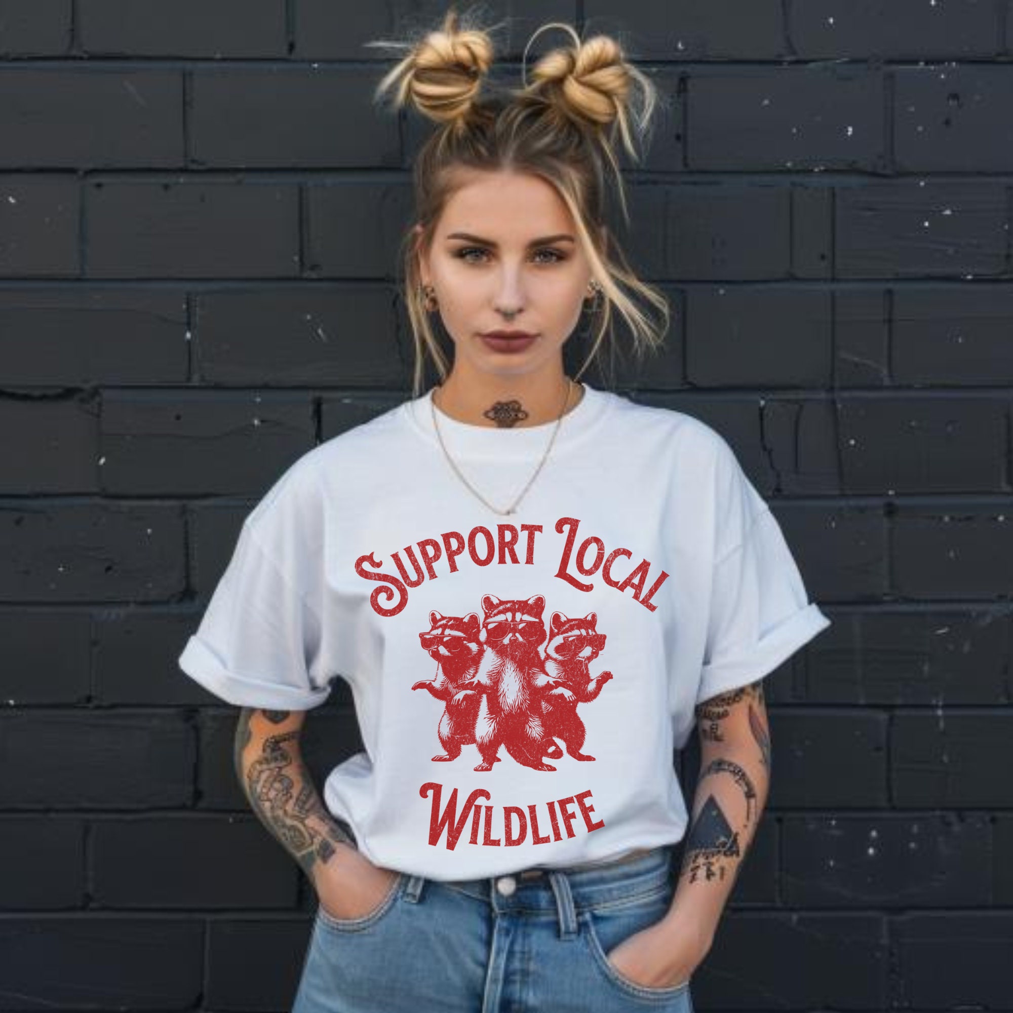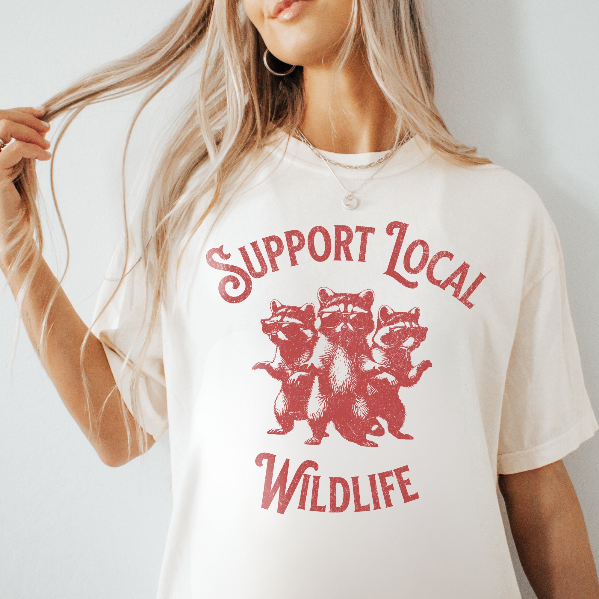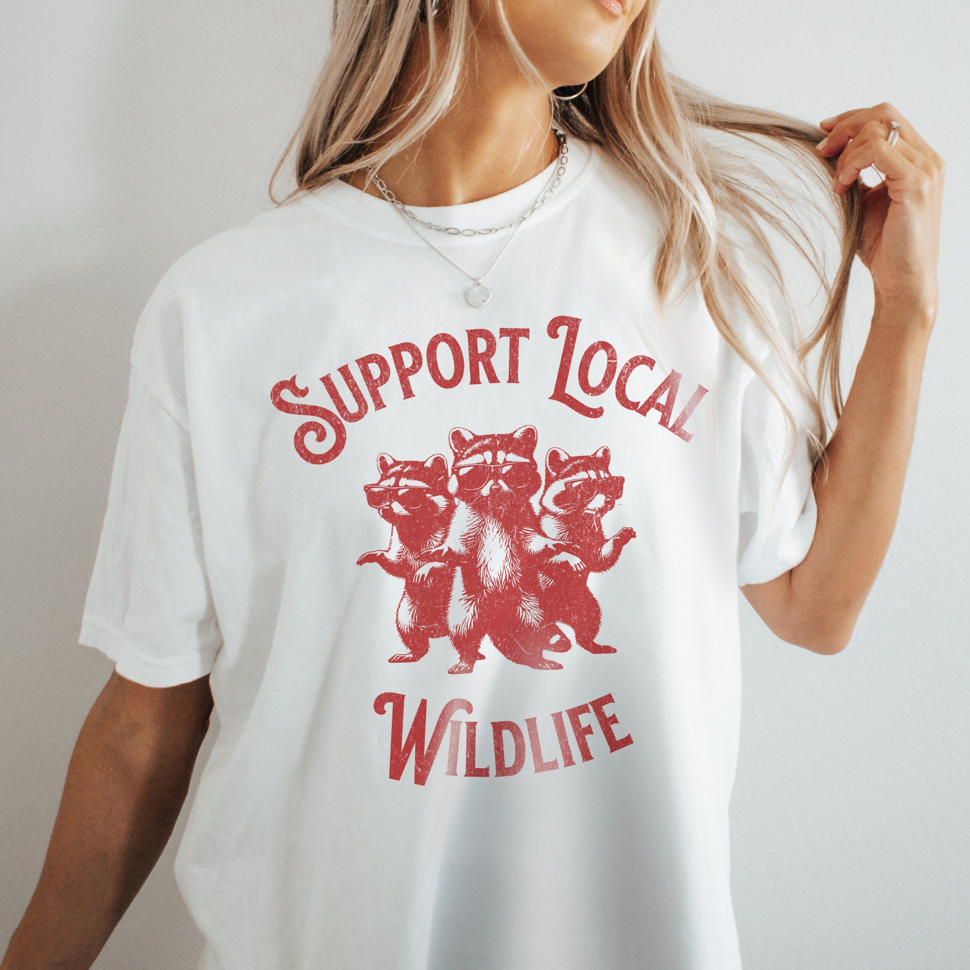 -- All orders submitted AFTER December 13th cannot be guaranteed to be delivered before Christmas. Support Your Local Wildlife Graphic T-Shirt, Retro Unisex Adult T Shirt, Vintage Raccoon T Shirt, Nostalgia T Shirt, Relaxed Cotton Tees