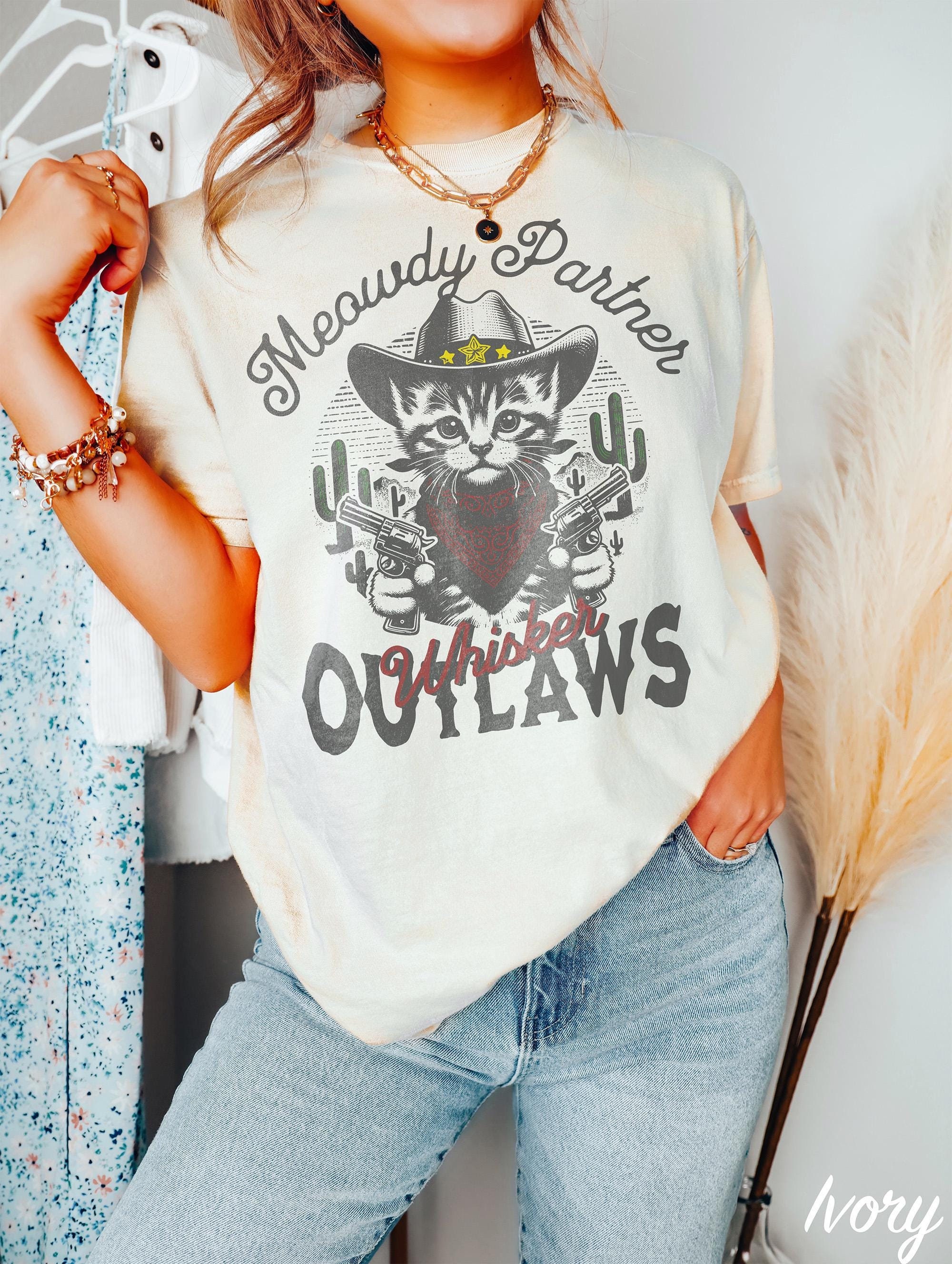 -- All orders submitted AFTER December 13th cannot be guaranteed to be delivered before Christmas. Meowdy Partner Cowboy Cat Shirt Vintage Cowboy TShirt Funny Cowboy Cat Tee Western Sweatshirt Oversized Comfort Colors