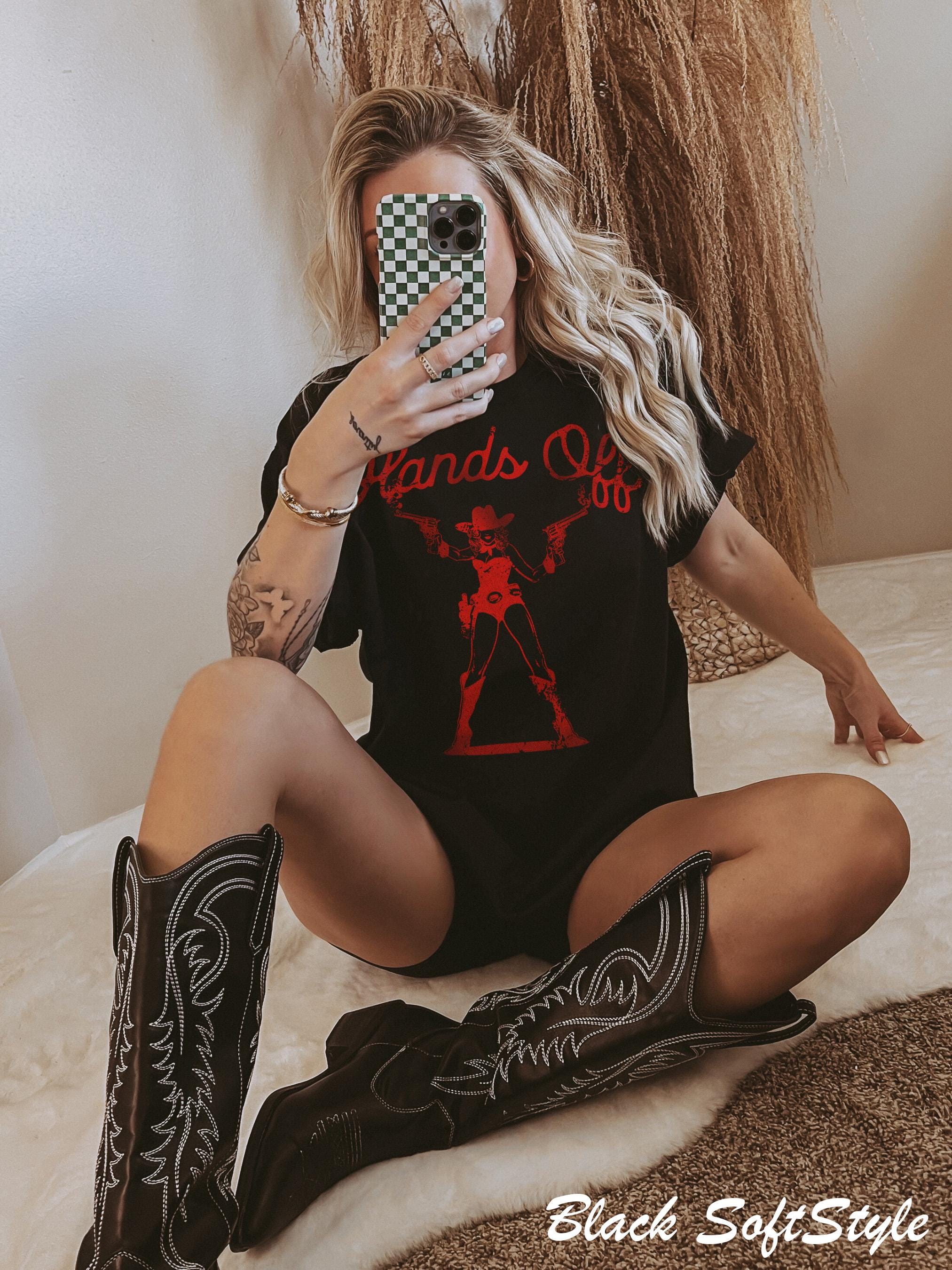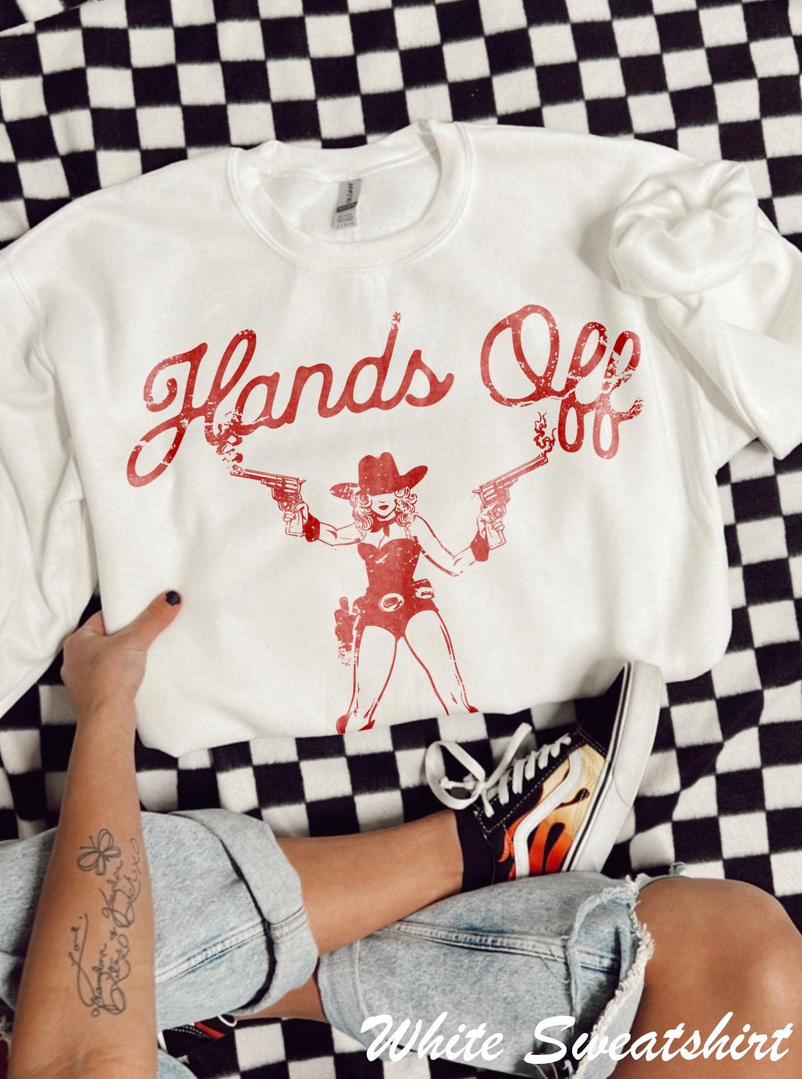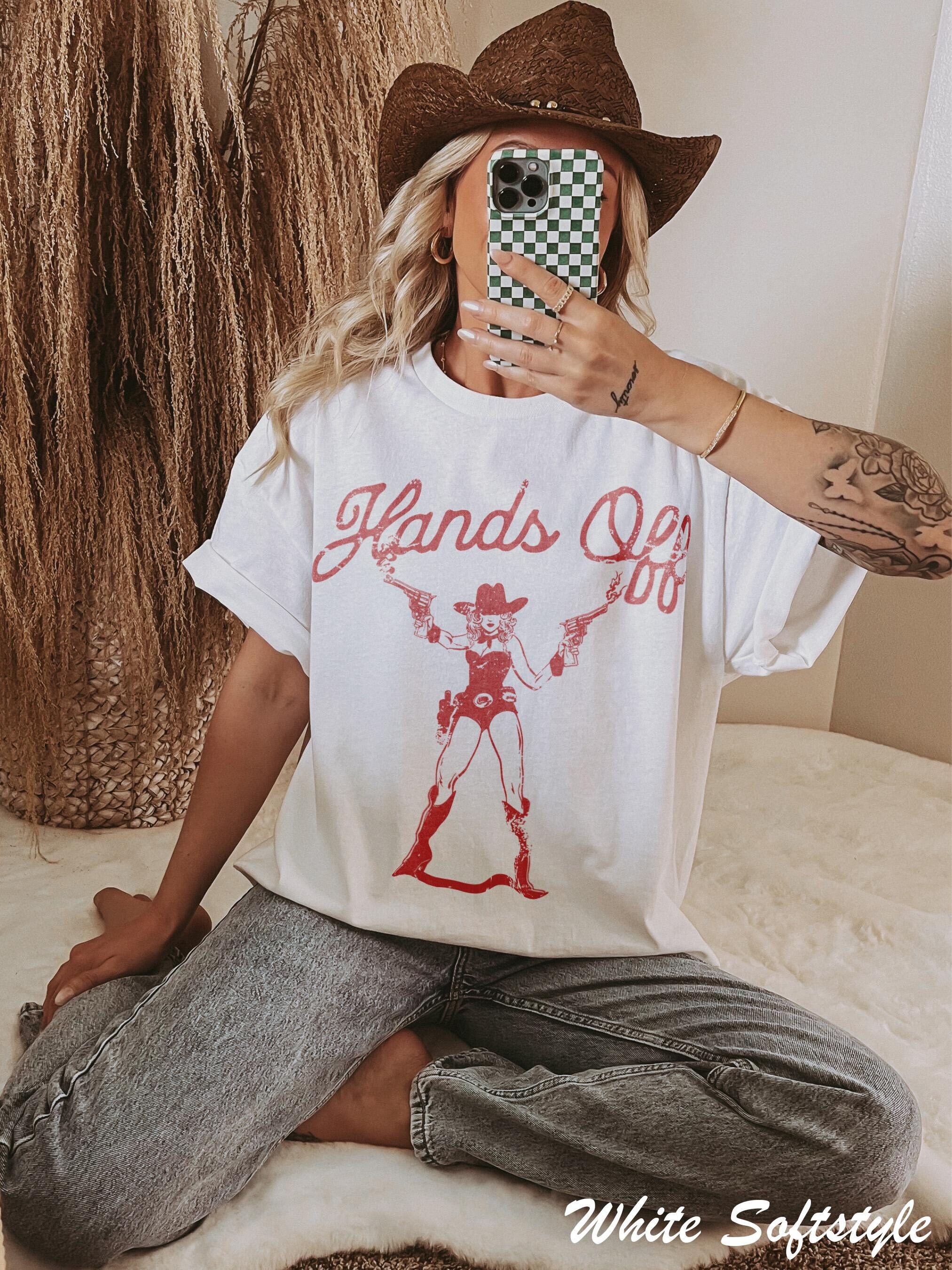 -- All orders submitted AFTER December 13th cannot be guaranteed to be delivered before Christmas. Hands Off Shirt, Retro Cowboy Aesthetic T-Shirt, Groovy Cowgirl Tee, Western Sweatshirt for women, Country Concert Gift Cowgirl Tee