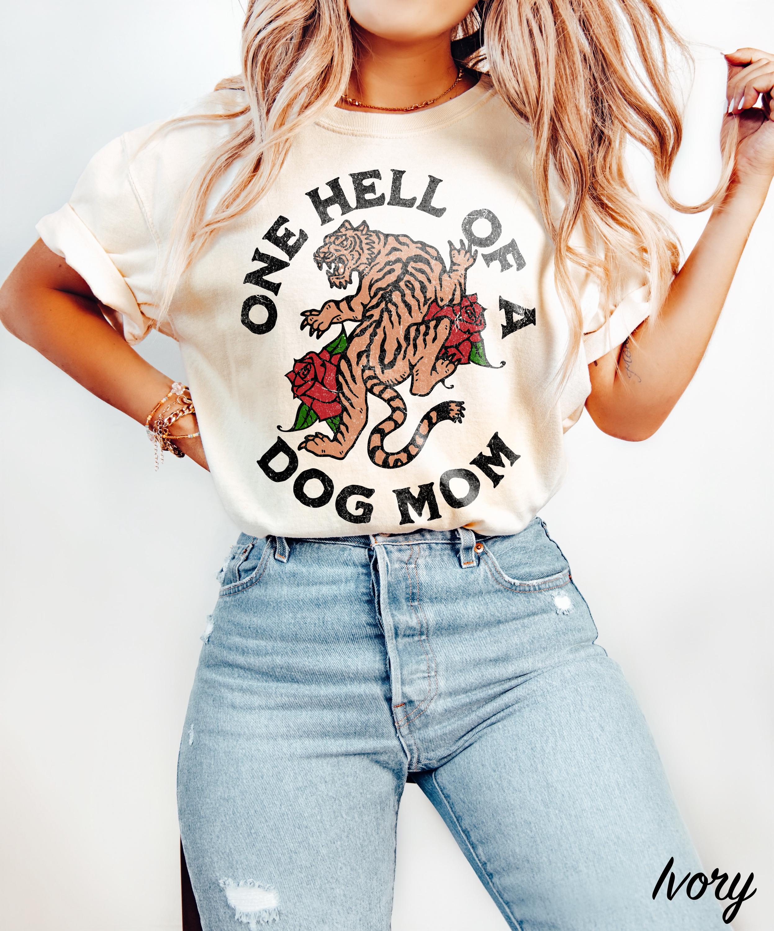 -- All orders submitted AFTER December 13th cannot be guaranteed to be delivered before Christmas. Dog Mom Shirt ,Dog Mom Tee, Gift for Her, Dog Lover Gift, Dog mom shirt, One hell of a dog momma, Trendy oversized animal lover gift for her