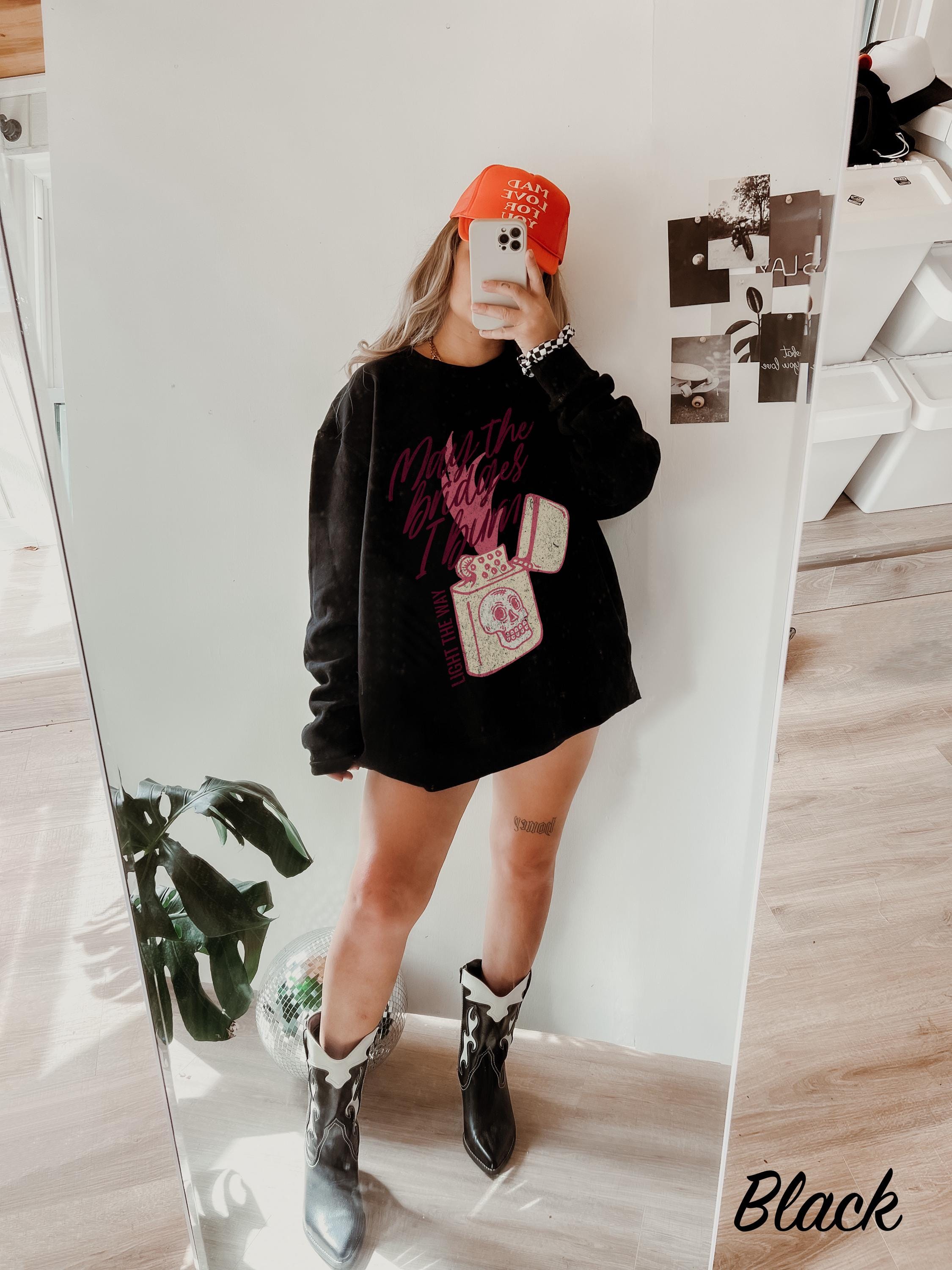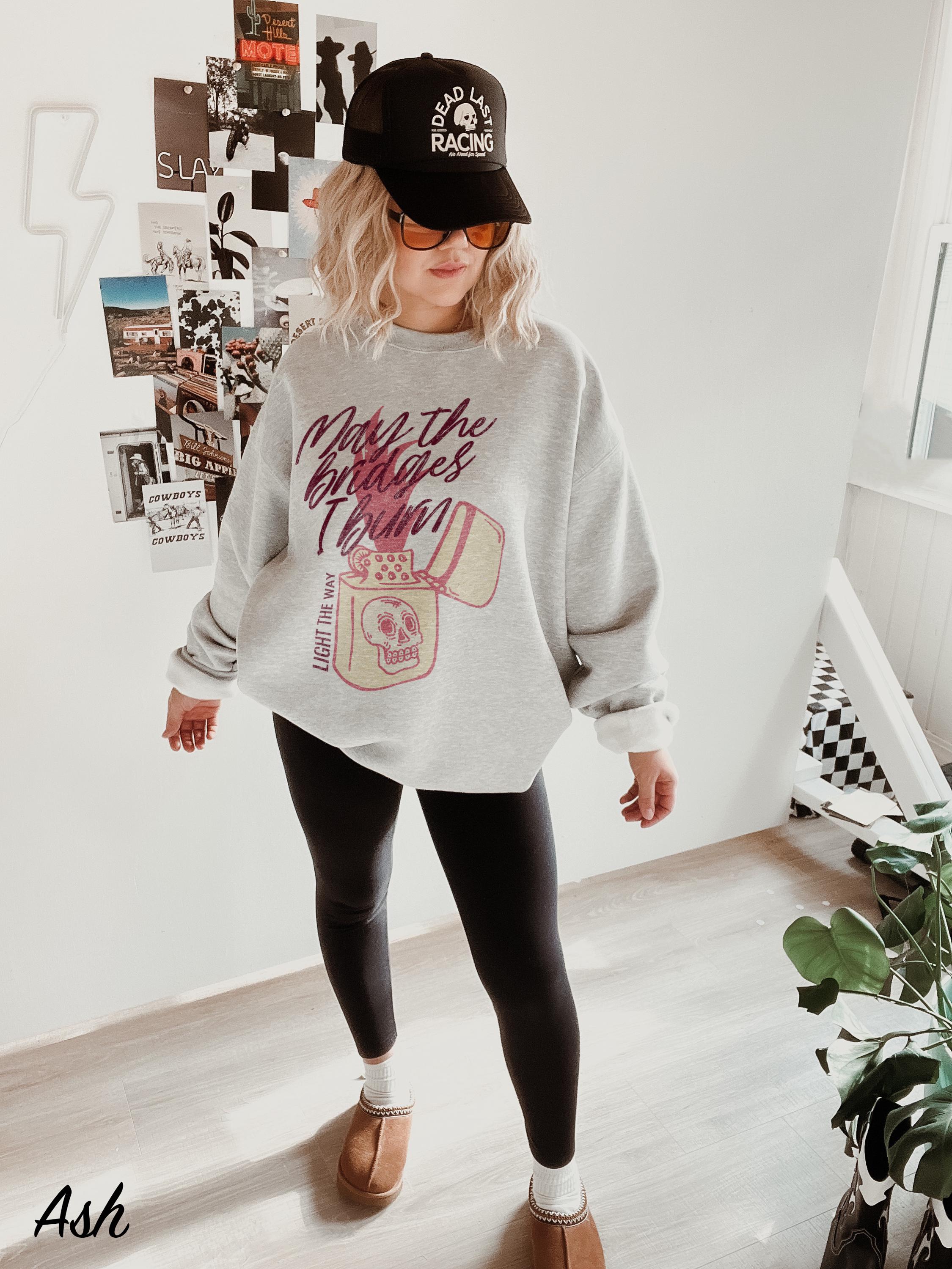 -- All orders submitted AFTER December 13th cannot be guaranteed to be delivered before Christmas. May the Bridges I Burn Light the Way, Comfort Colors Sweatshirt, Cowboy T shirt, Cowgirl fashion, vintage western fashion, Trendy Oversized