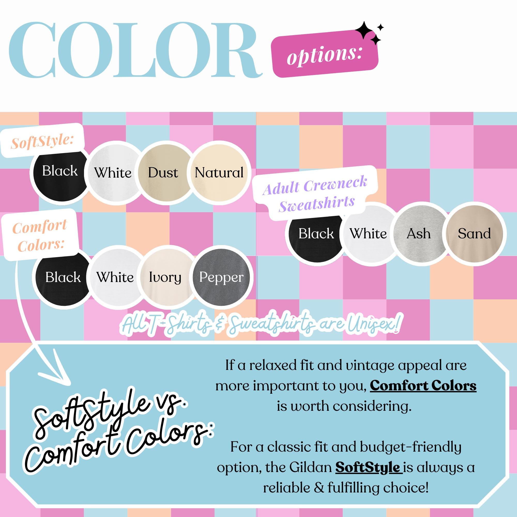 * Choose between a Comfort Colors tee, Softstyle tee, or a crewneck sweatshirt