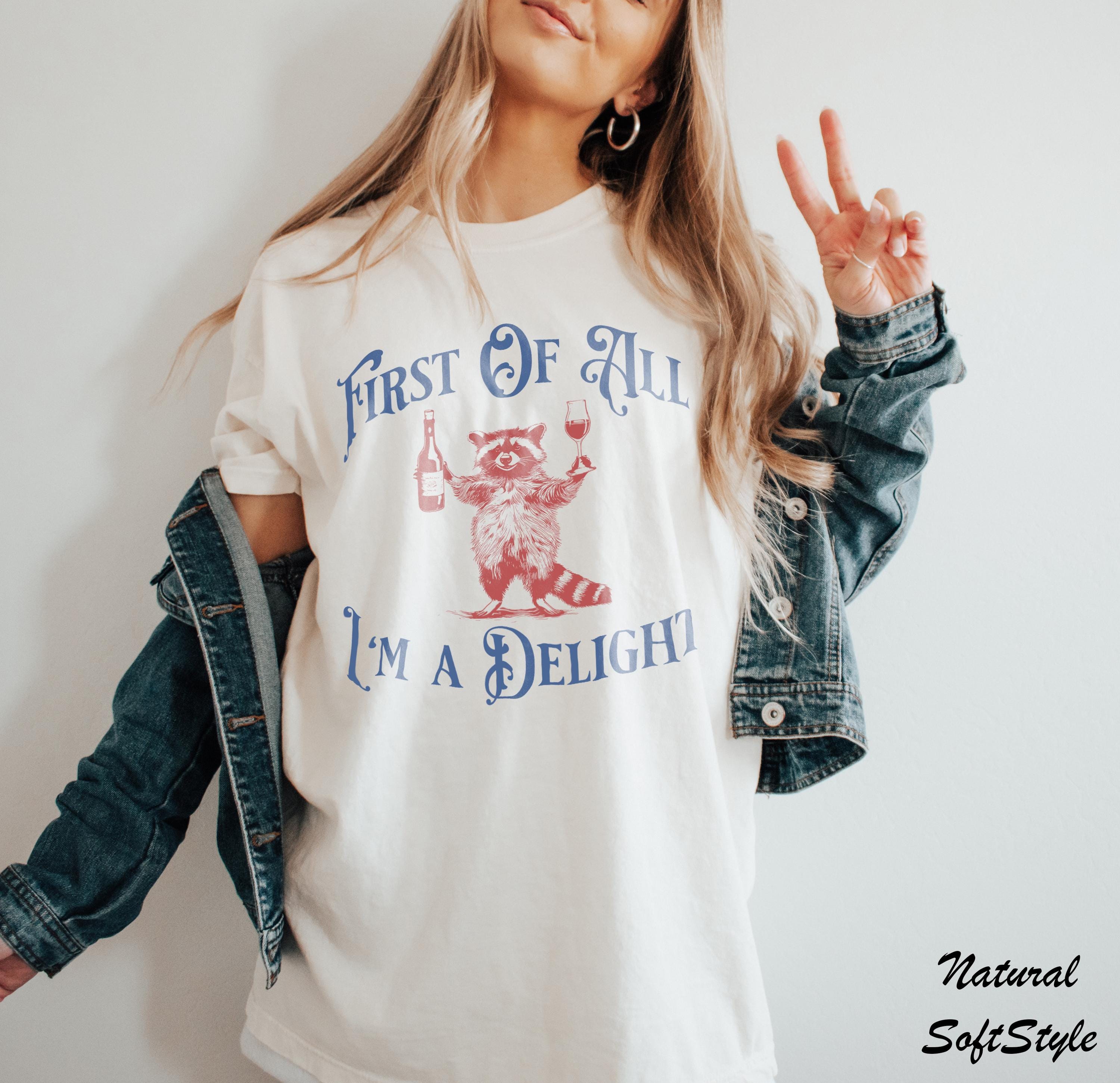 -- All orders submitted AFTER December 13th cannot be guaranteed to be delivered before Christmas. Funny Raccoon Shirts Angry Raccoon TShirt, First Of All I'm A Delight, Raccoon Lover, Animal Lover, Unhinged Graphic Tees, Funny Shirt Women
