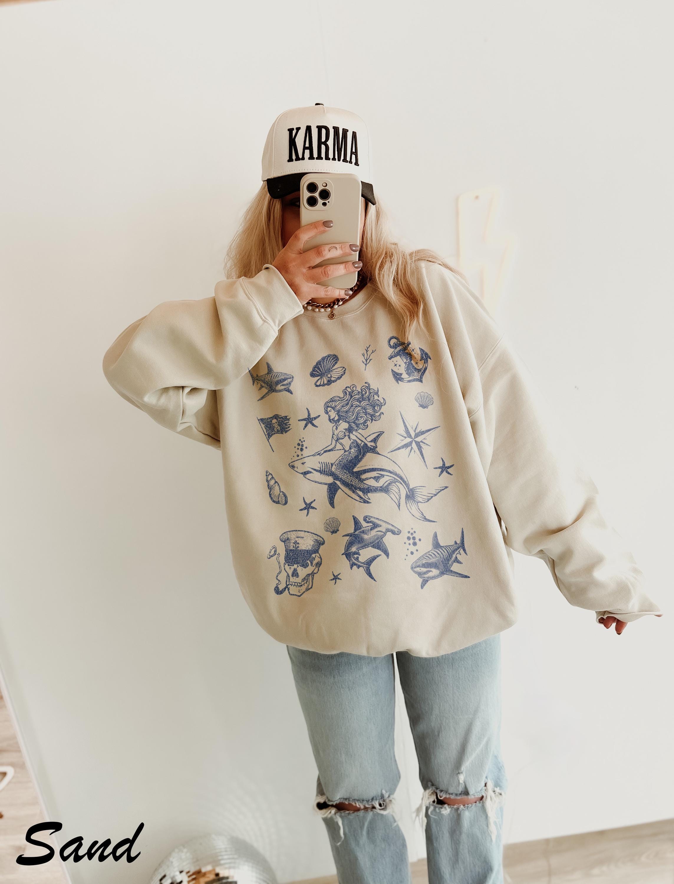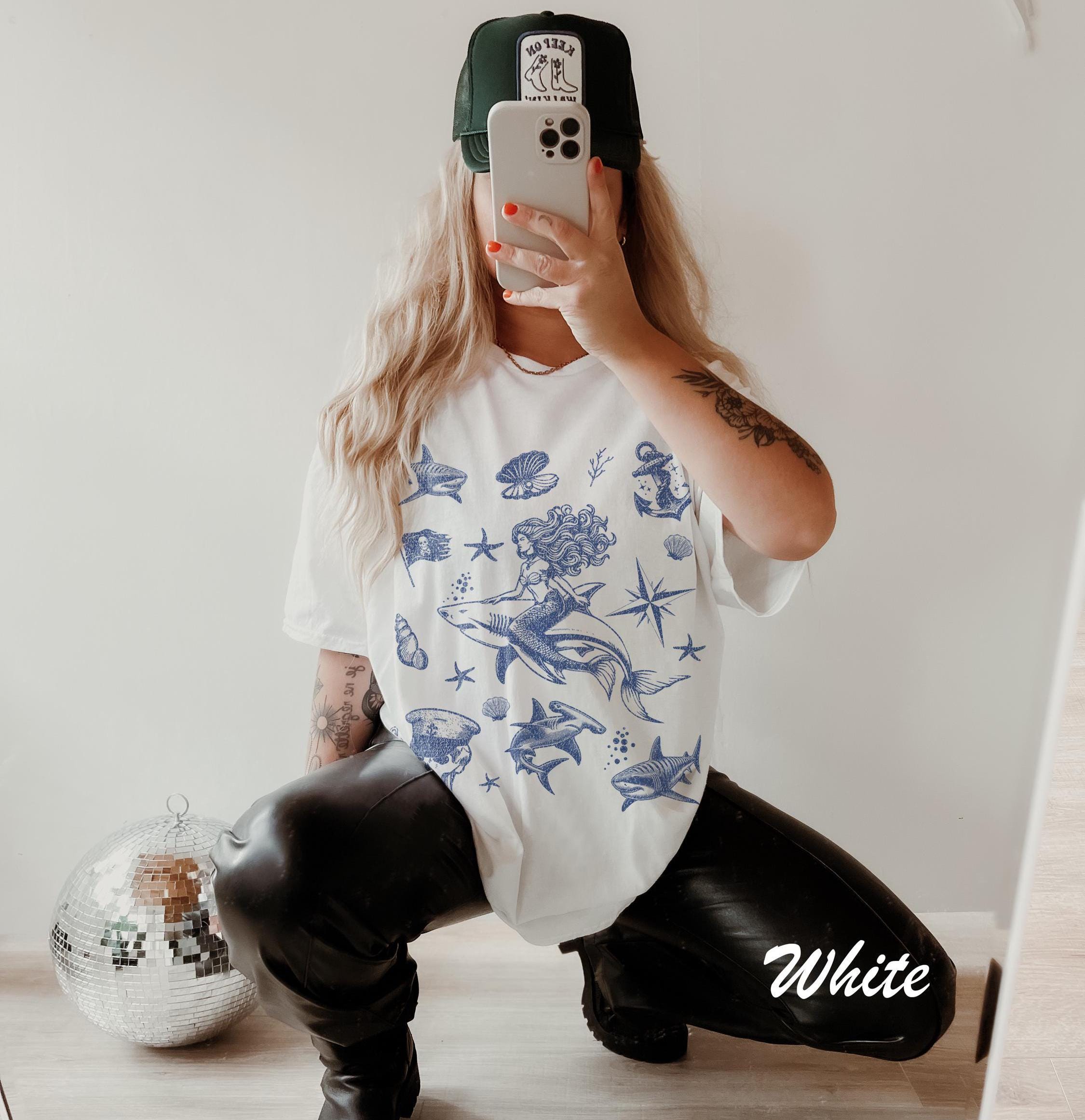 -- All orders submitted AFTER December 13th cannot be guaranteed to be delivered before Christmas. Vintage 90s Tattoo Shark Mermaid Tshirt, Retro Ocean Nature Shirt, Sealife, Ocean, Whale, Orca, Turtle, Dolphin Shirt, Unisex Adult Tee