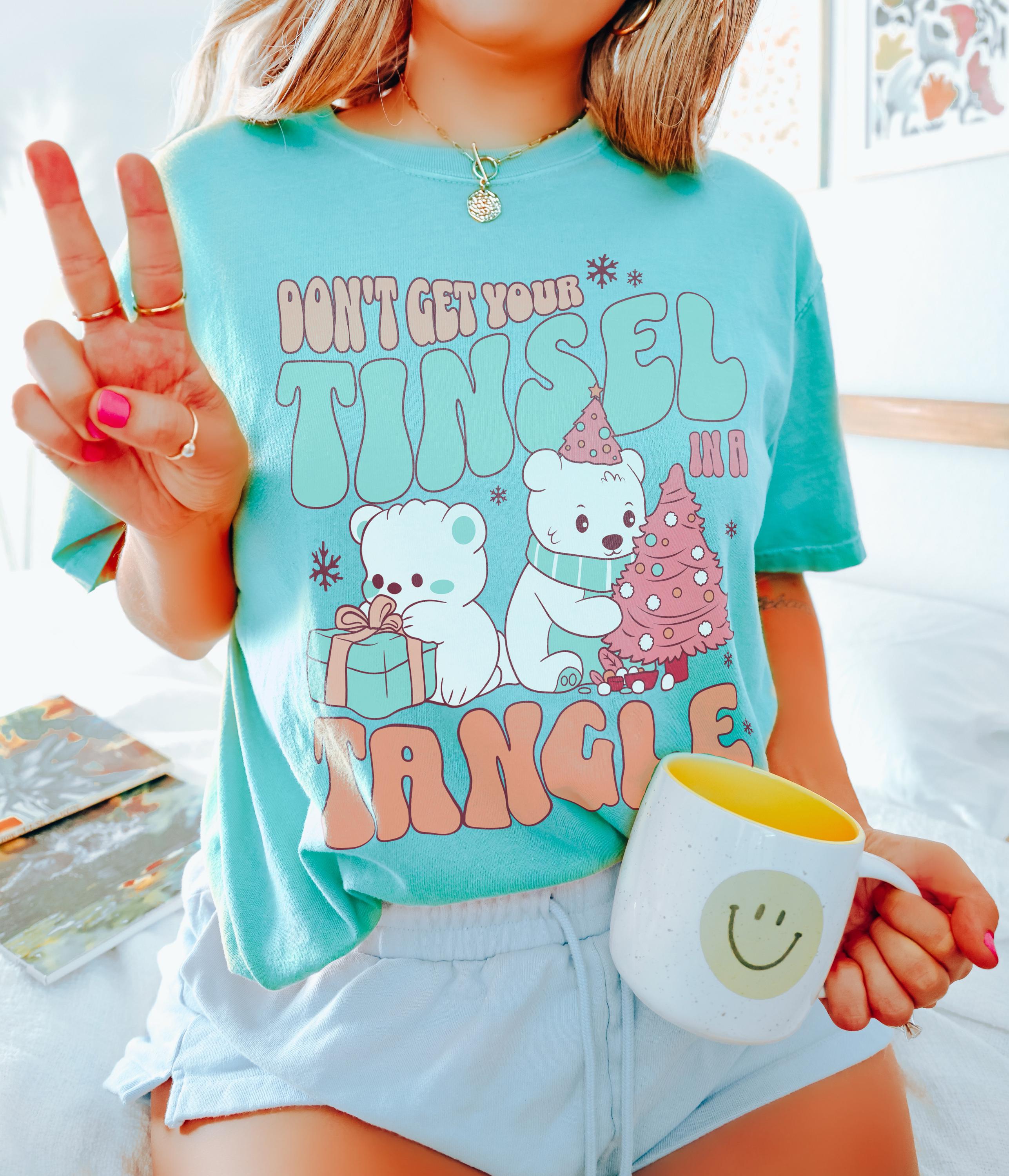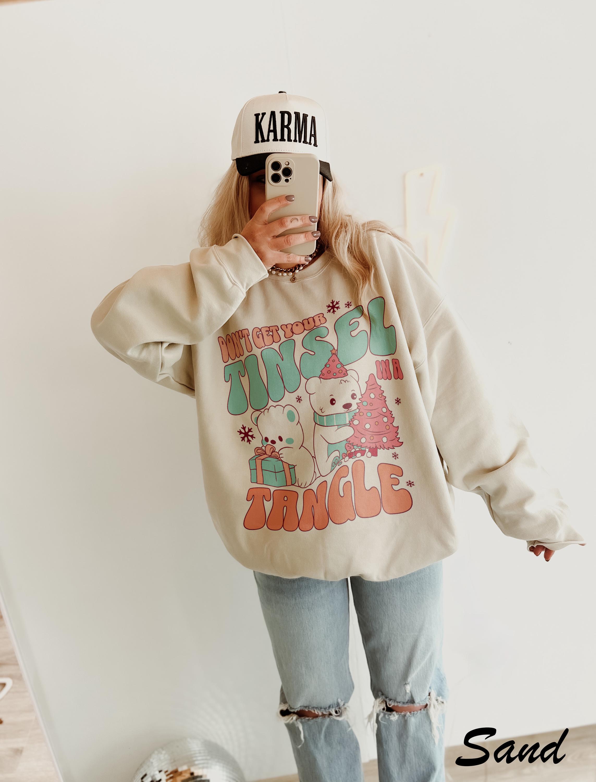 -- All orders submitted AFTER December 13th cannot be guaranteed to be delivered before Christmas. North Pole TShirt, Vintage Distressed Girly Christmas TShirt Sweatshirt, Tinsel in a Tangle, Pink Santa Clause, Retro Winter, Family Christmas, Cute XMas, Youth, Unisex Adult