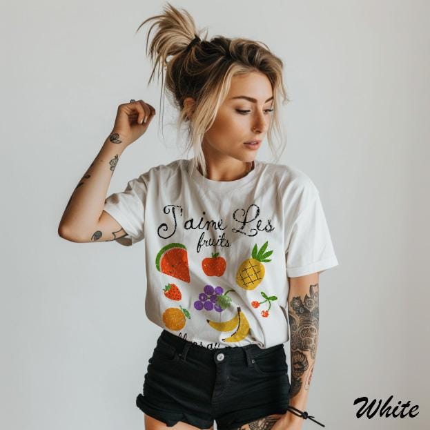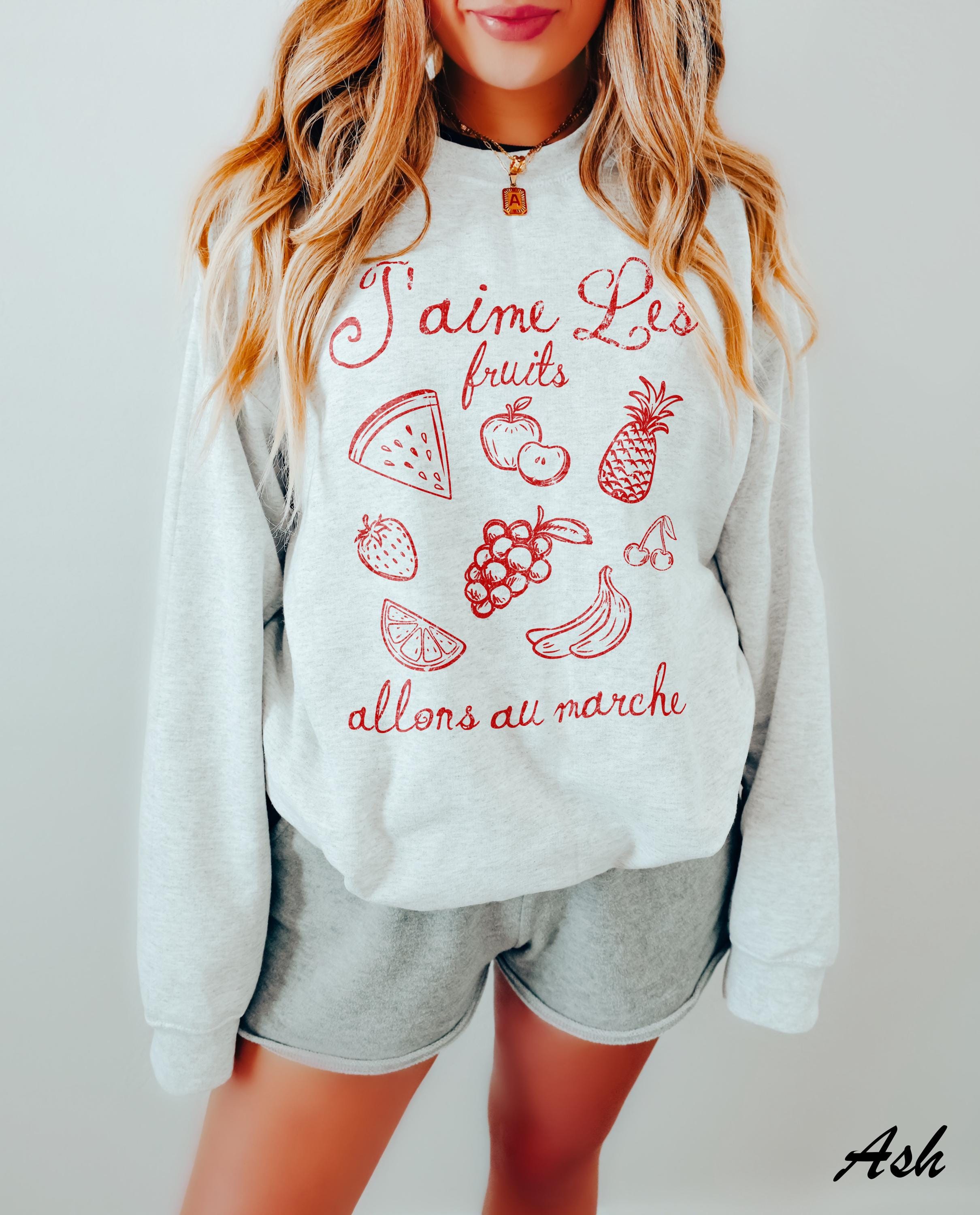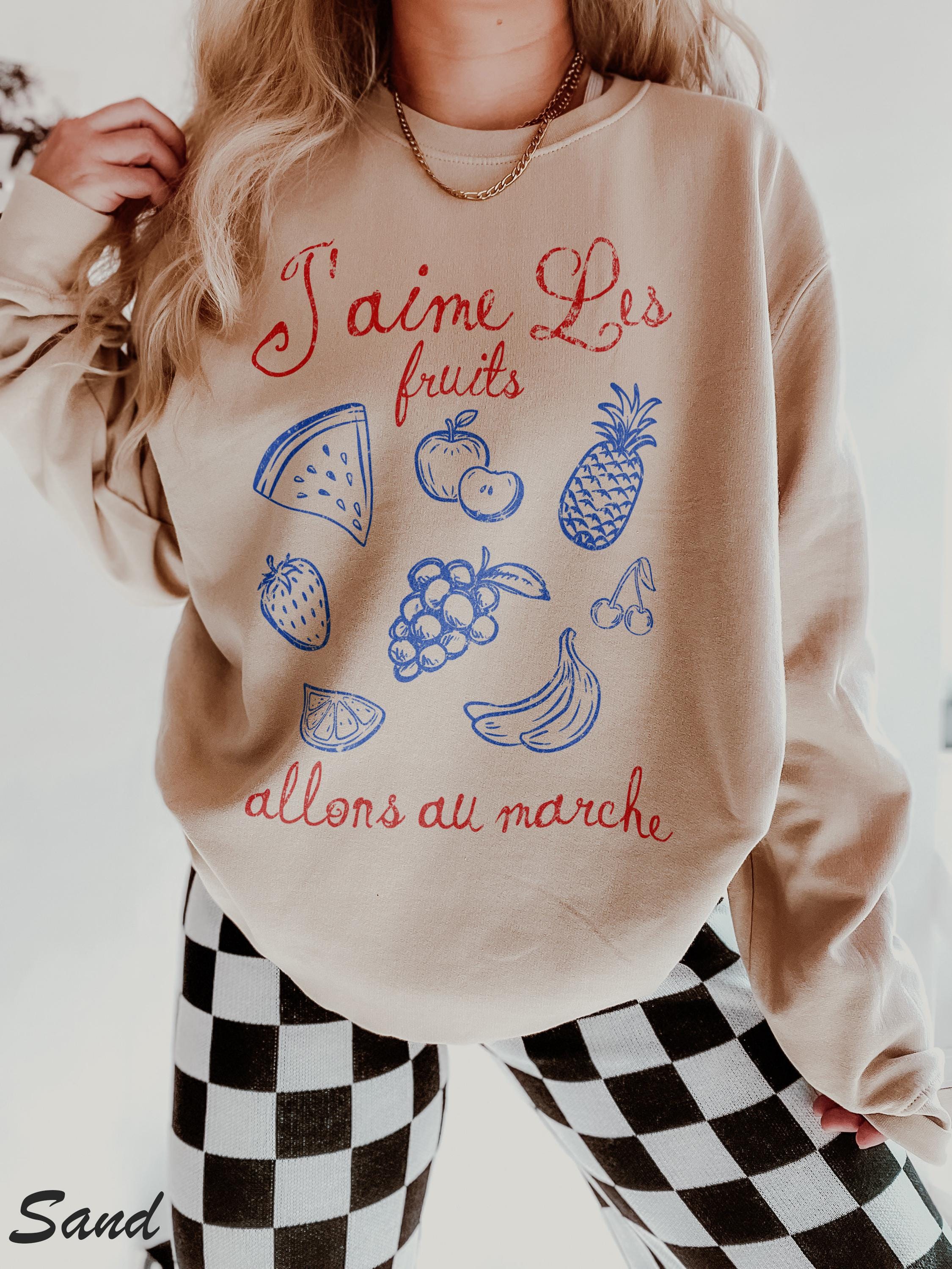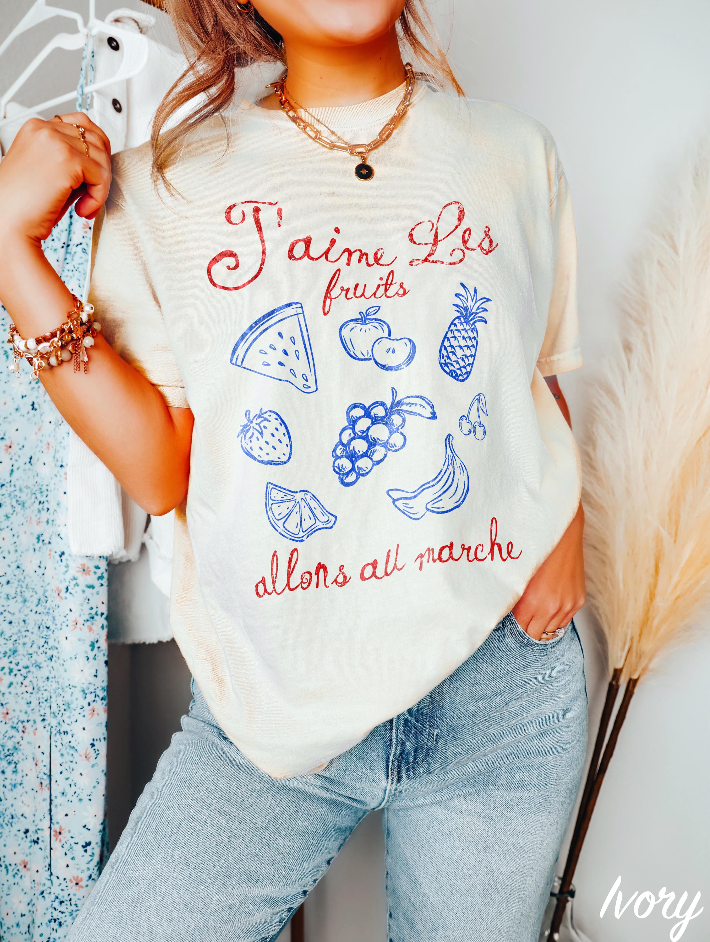 "I LIKE FRUIT. LET'S GO TO THE MARKET" -- J'aime les fruits. Allons all march'e. French t-shirt Minimalist style French quote tee for women Parisian style French language gift for girlfriend shirt.
