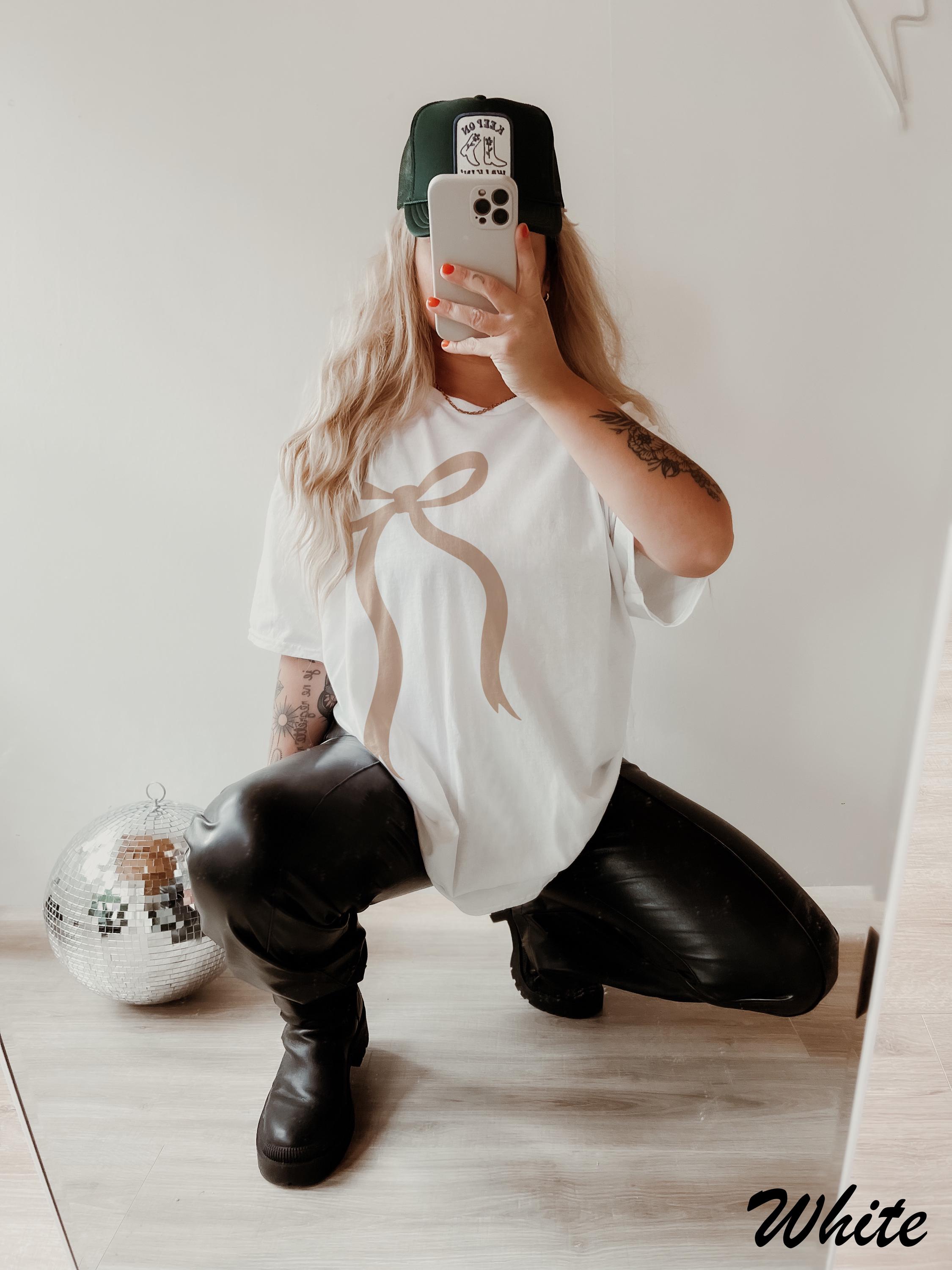 Pink Bow Shirt | Oversized Graphic Tee | Y2K Aesthetic T-Shirt | Coquette Girl Outfit | Soft Aesthetic Top | Cute Preppy Tee | Sweatshirts