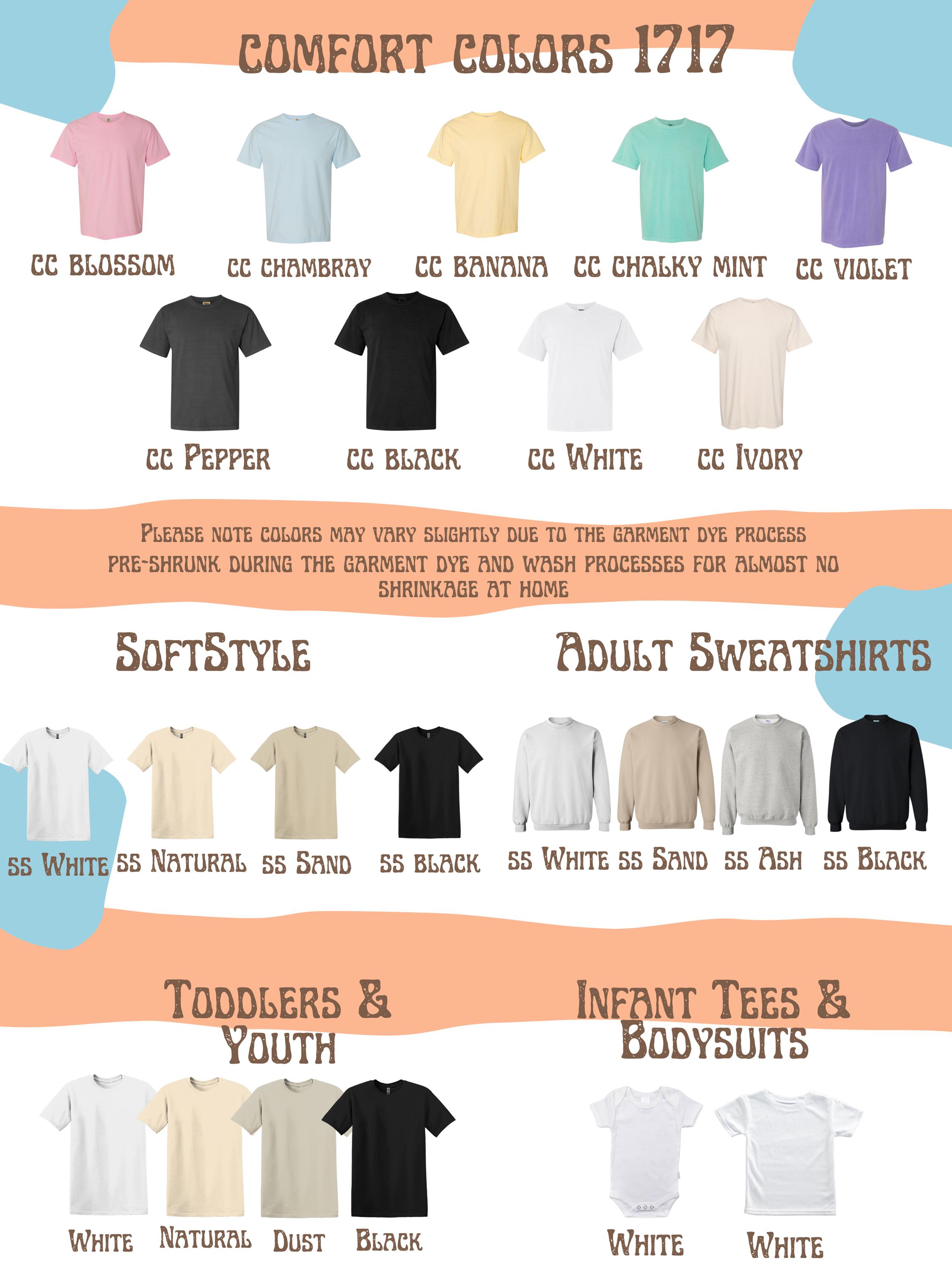 👕 Choose from Comfort Colors, Gildan Softstyle, or comfy crewneck sweatshirt