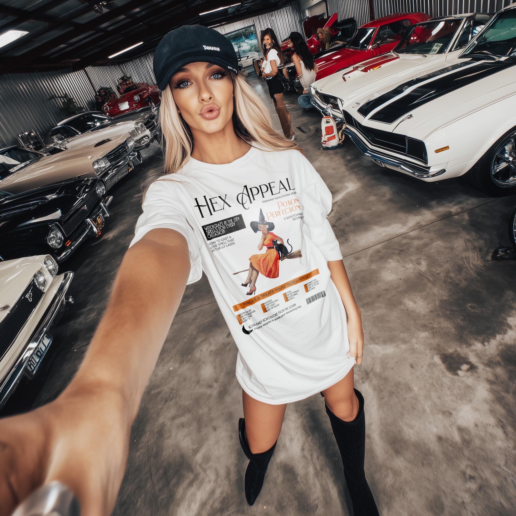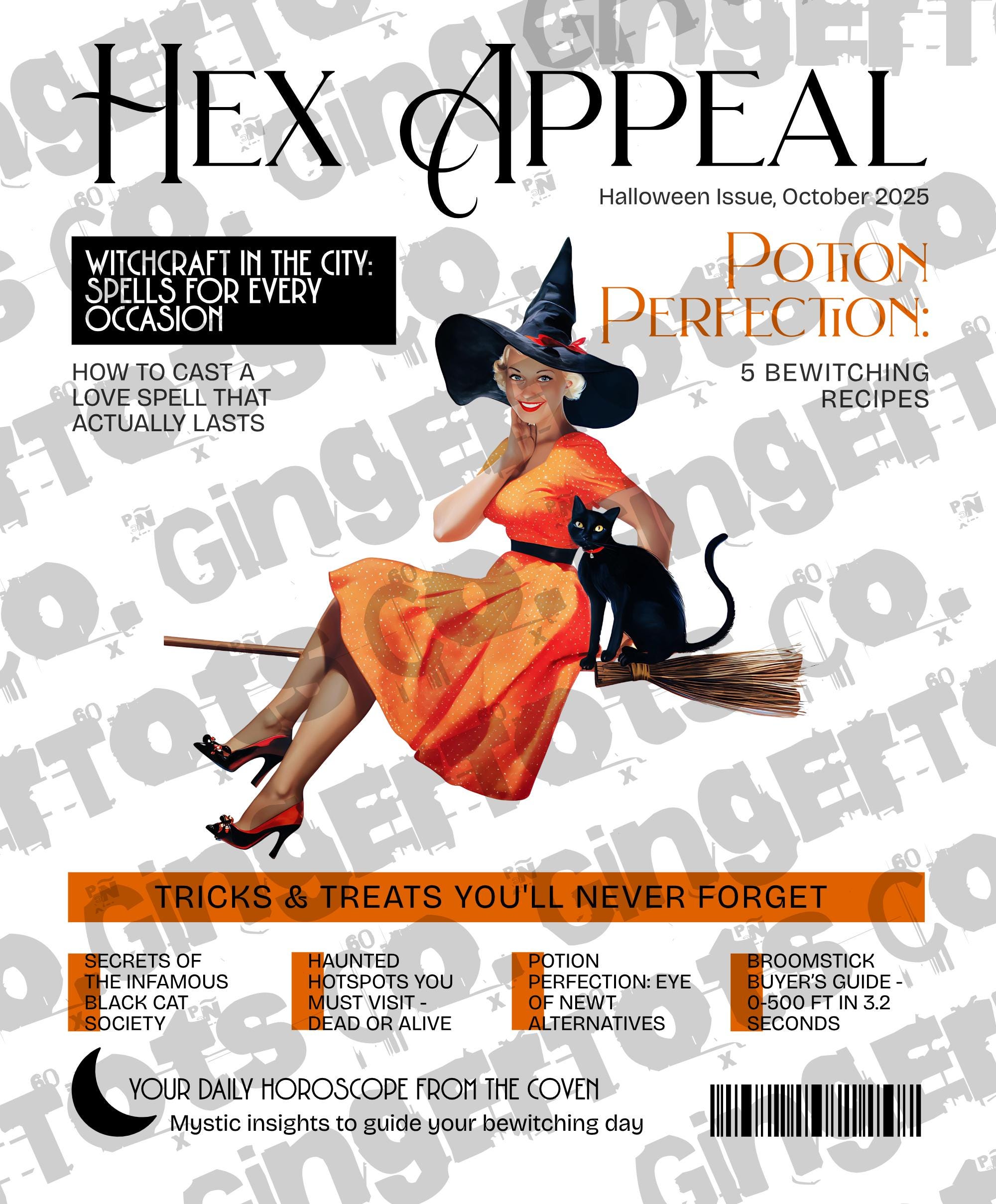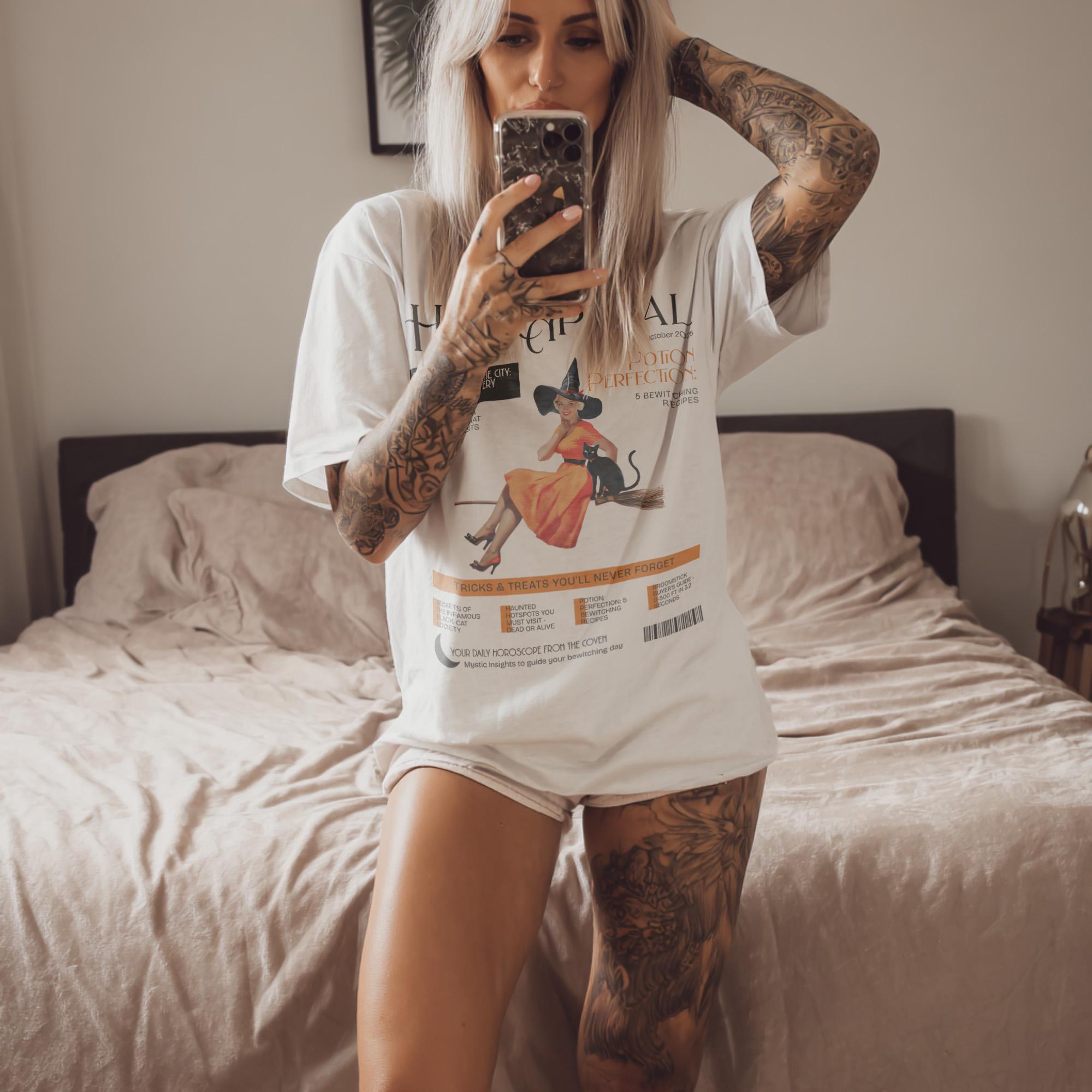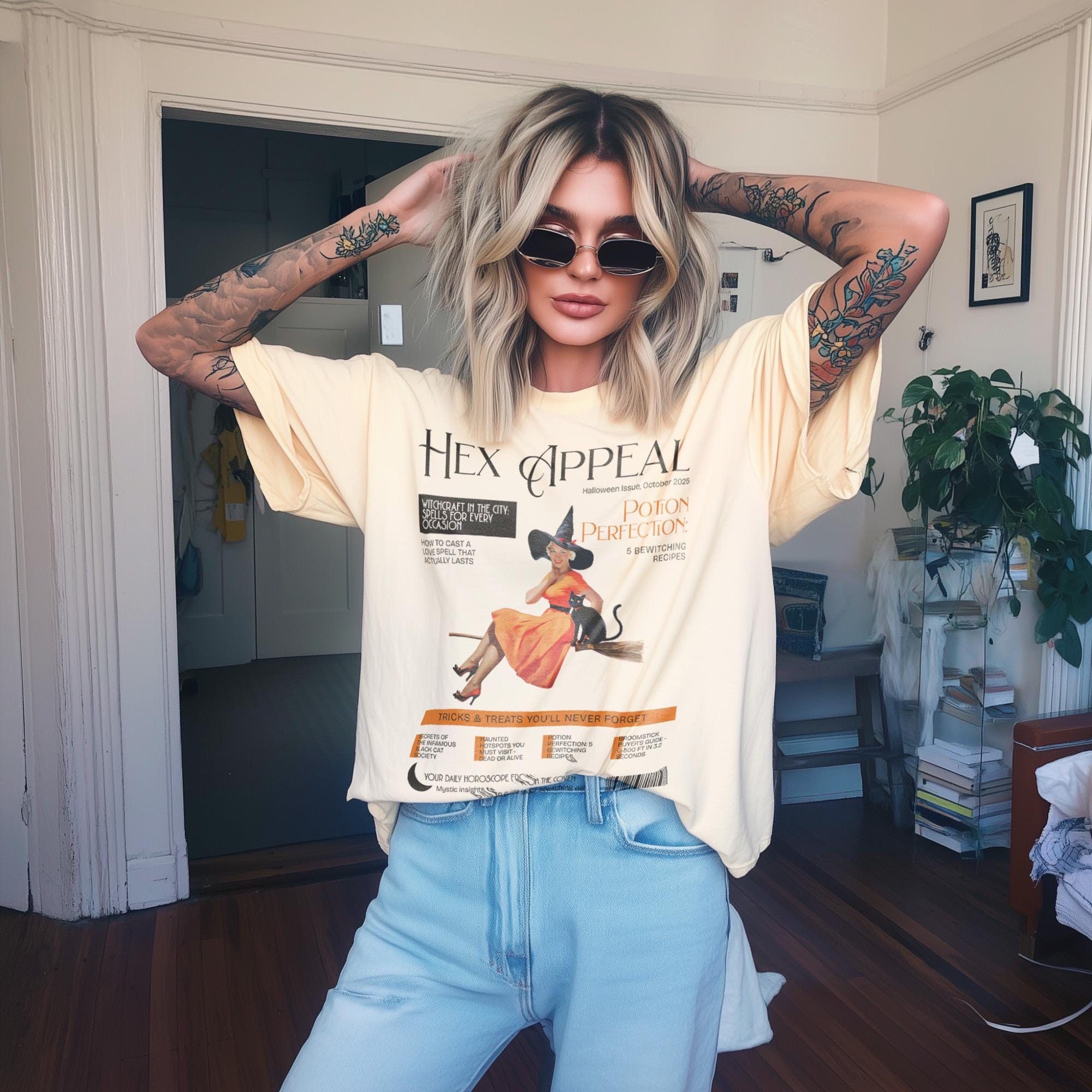 Step into spooky season with our Hex Appeal Witch T-Shirt! Designed with a retro pin-up witch and vintage magazine cover details, this bewitching tee is perfect for Halloween parties, haunted gatherings, or showing off your witchy aesthetic all year long. A must-have for lovers of retro vibes and spooky cute fashion.